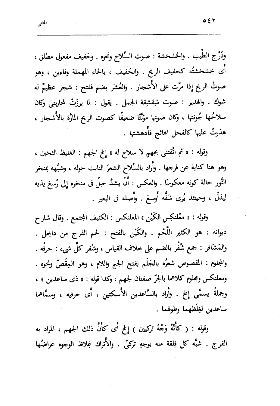 وَقَوله: معلنكس الكين المعلنكس: الكثيف الْمُجْتَمع. وَقَالَ شَارِح ديوانه: هُوَ الْكثير اللَّحْم. والكين بِالْفَتْح: لحم الْفرج من دَاخل. والمشافر: جمع شفر بِالضَّمِّ على خلاف الْقيَاس وشفر كل شَيْء: حرفه. والمجلوم: المقصوص شعره بالجلم بِفَتْح الْجِيم وَاللَّام وَهُوَ المقص وَنَحْوه. ومعلنكس ومجلوم كِلَاهُمَا بِالْجَرِّ صفتان لجهم وَكَذَا قَوْله: ذِي ساعدين وَجُمْلَة: يُسمى إِلَخ. وَأَرَادَ بالساعدين الأسكتين أَي: حرفيه وسماهما ساعدين لغلظهما وطولهما.