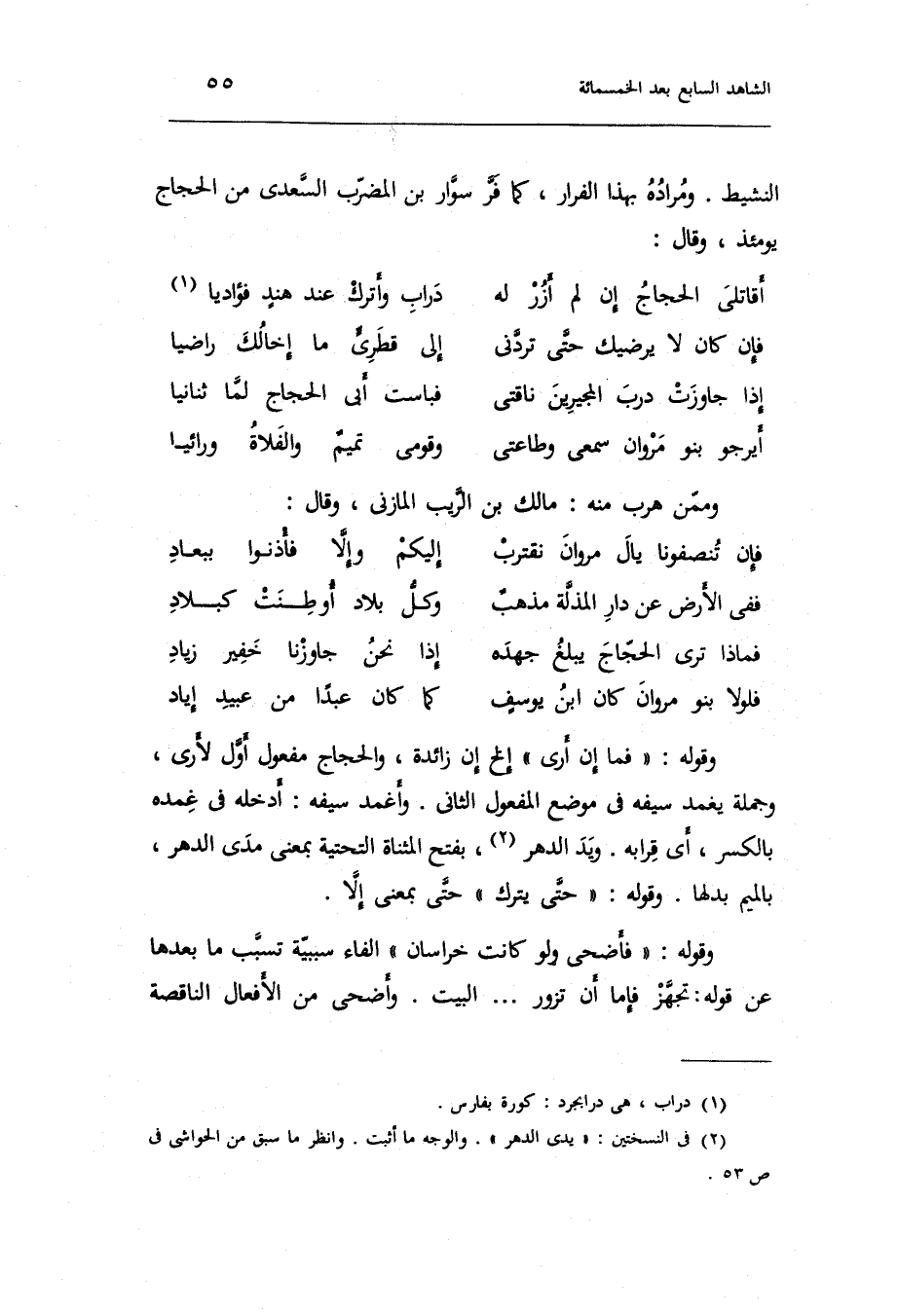 (إِذا جَاوَزت درب المجيرين نَاقَتي ... فباست أبي الْحجَّاج لما ثنانيا)