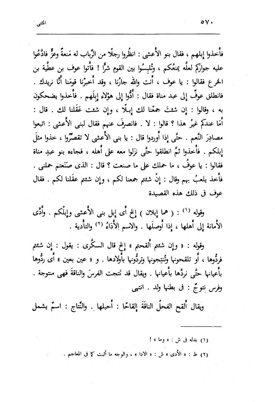 وَقَوله: هما إبلان إِلَخ أَي: إبل بني الْأَعْشَى وإبلكم. وَأدّى الْأَمَانَة إِلَى أَهلهَا إِذا أوصلها.