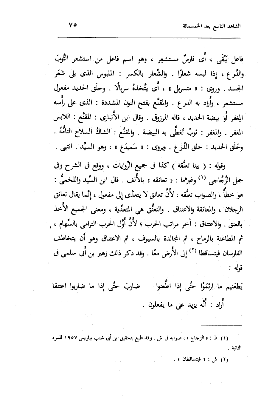 (يطعنهم مَا ارتموا حَتَّى إِذا اطعنوا ... ضَارب حَتَّى إِذا مَا ضاربوا اعتنقا)