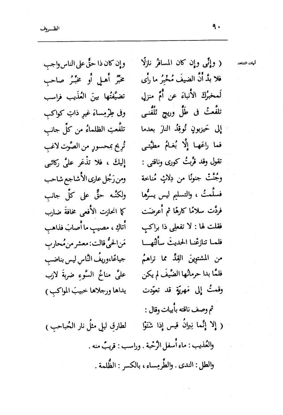 (وَإِنِّي وَإِن كَانَ الْمُسَافِر نازلاً ... وَإِن كَانَ ذَا حق على النَّاس وَاجِب)