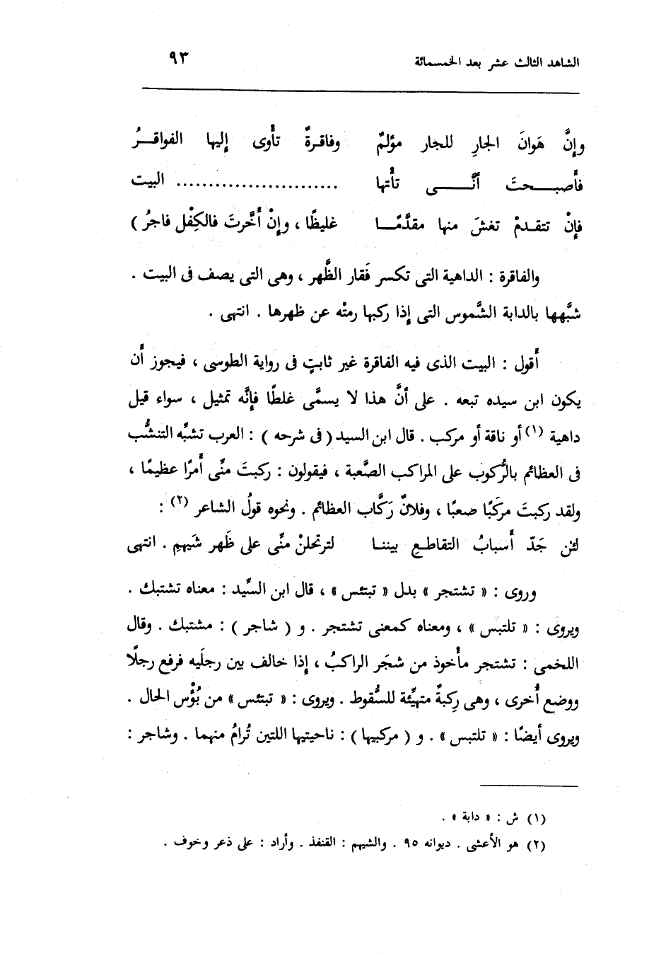 أَقُول: الْبَيْت الَّذِي فِيهِ الفاقرة غير ثابتٍ فِي رِوَايَة الطوسي فَيجوز أَن يكون ابْن سَيّده تبعه.