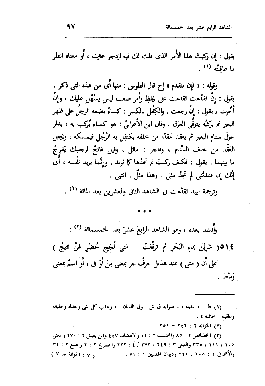 3 - (الشَّاهِد الرَّابِع عشر بعد الْخَمْسمِائَةِ)