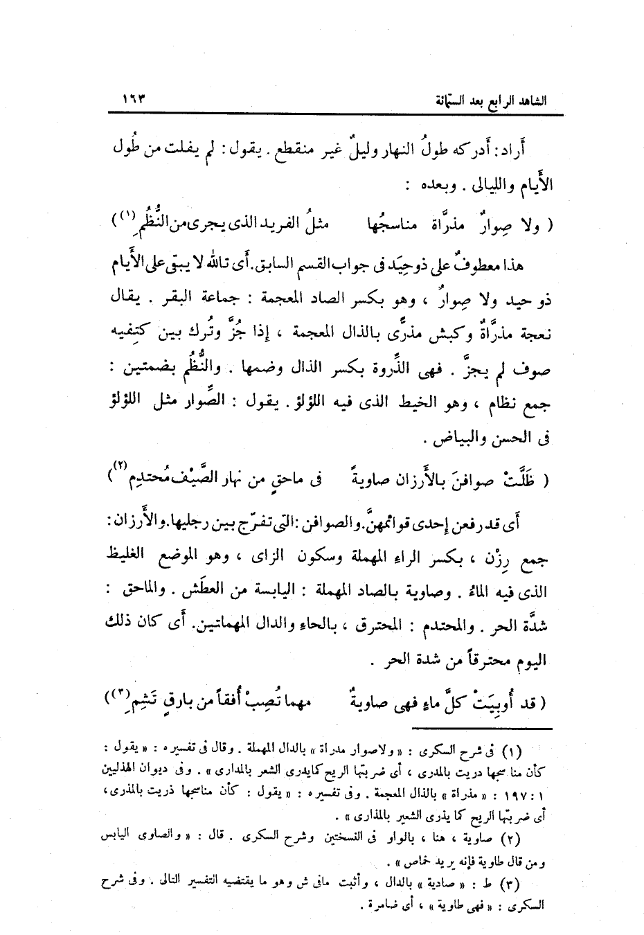(وَلَا صوارٌ مذراةٌ مناسجها ... مثل الفريد الَّذِي يجْرِي من النّظم)