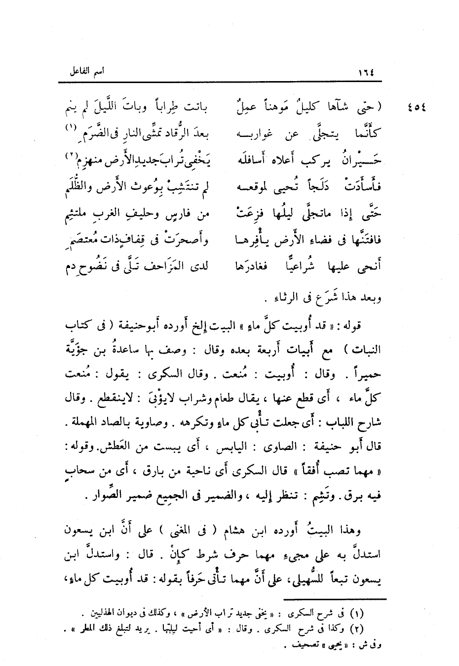 (حَتَّى شآها كليلٌ موهناً عملٌ ... باتت طراباً وَبَات اللَّيْل لم ينم)