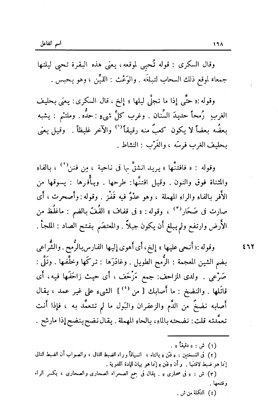وَقَوله: حَتَّى إِذا مَا تجلى لَيْلهَا إِلَخ قَالَ السكرِي: يَعْنِي بحليف الغرب رمحاً حَدِيد السنان. وَغرب كل شيءٍ: حَده. وملتئم: يشبه بعضه بَعْضًا لَا يكون كعبٌ مِنْهُ رَقِيقا وَالْآخر غليظاً. وَقيل: يَعْنِي وَقَوله: فافتنها يُرِيد انْشَقَّ بهَا فِي نَاحيَة من فنن بِالْفَاءِ والمثناة فَوق وَالنُّون. وَقيل افتتنها.