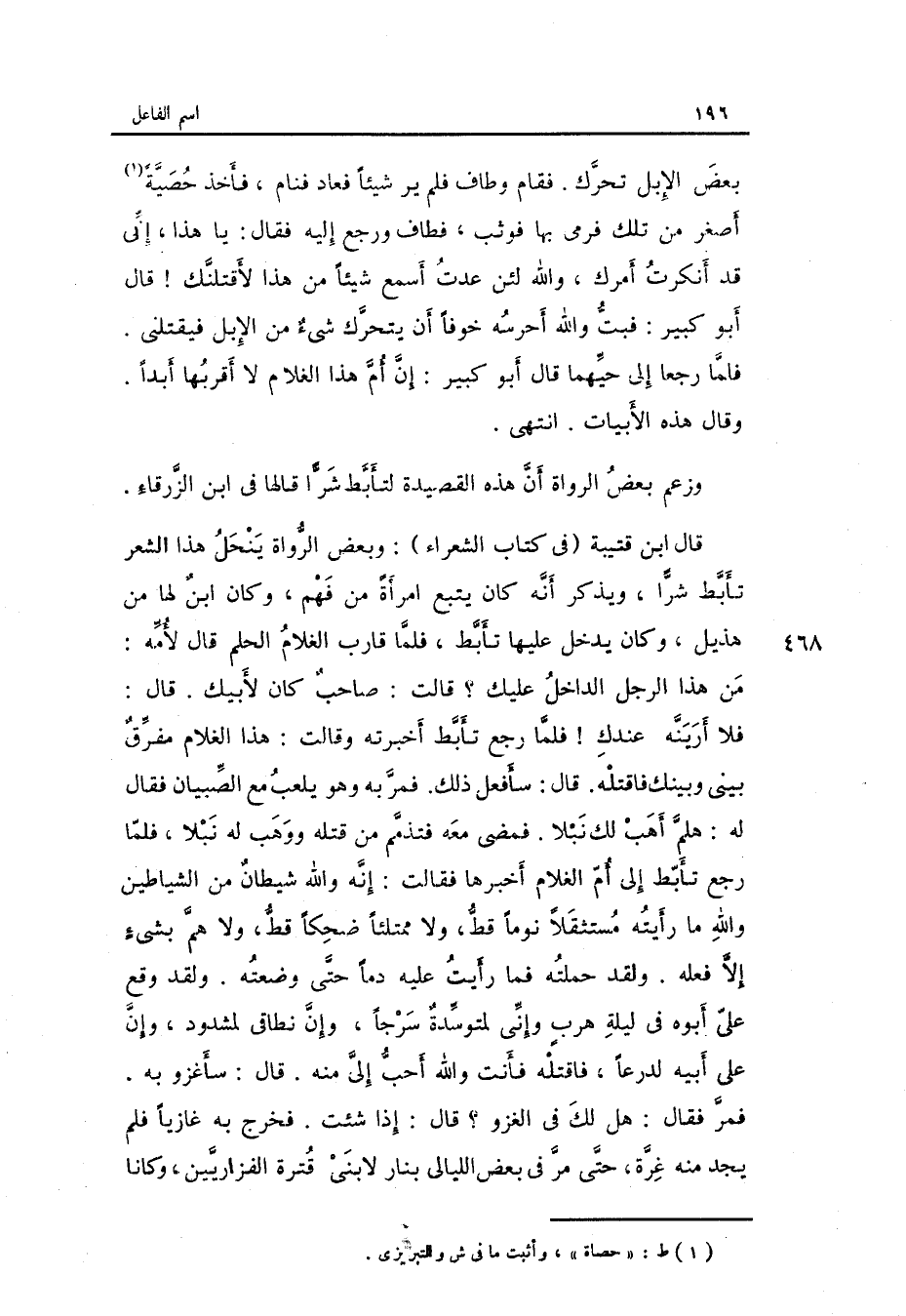 وَزعم بعض الروَاة أَن هَذِه القصيدة لتأبط شرا قَالَهَا فِي ابْن الزَّرْقَاء.