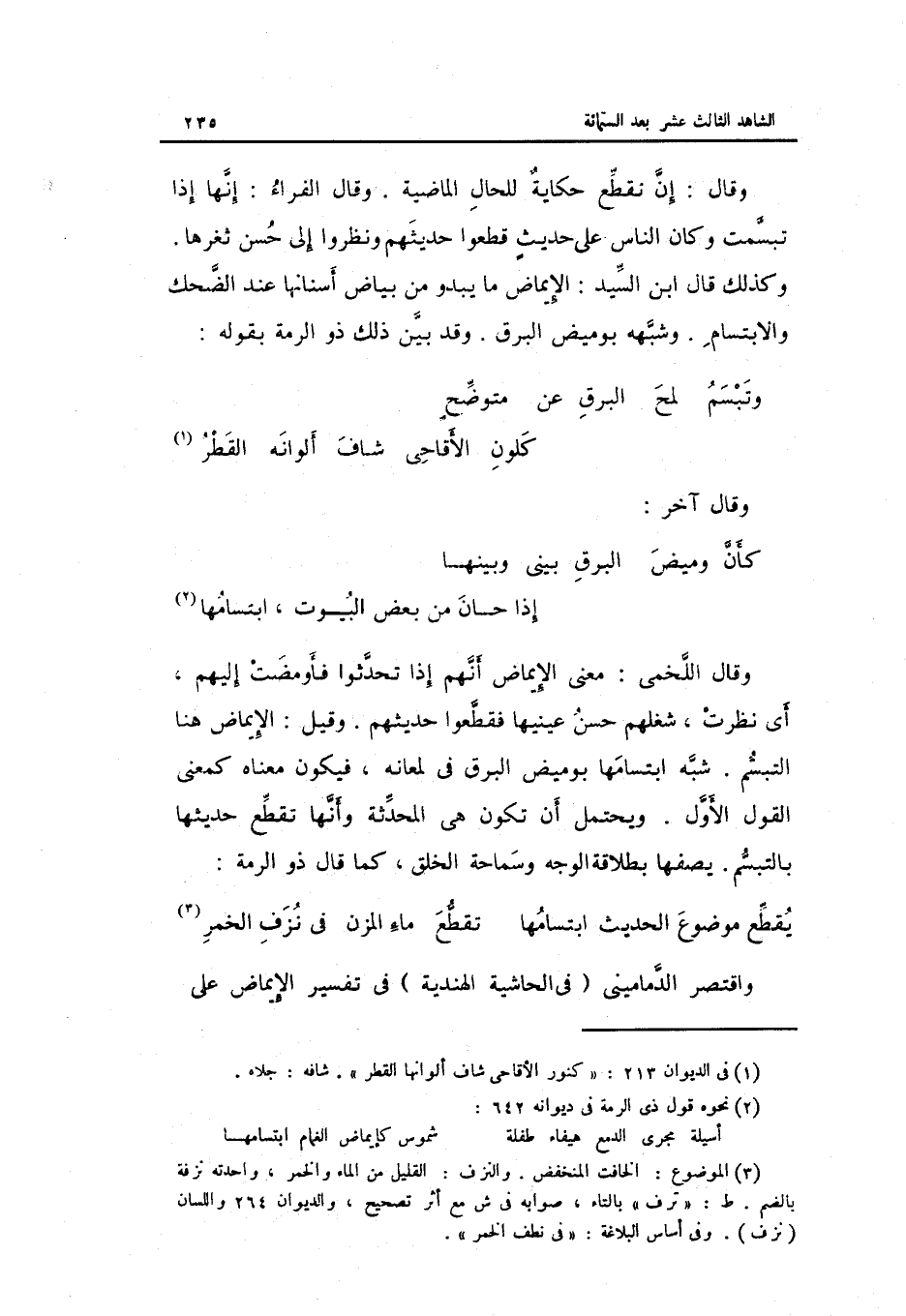 وَاقْتصر الدماميني فِي الْحَاشِيَة الْهِنْدِيَّة فِي تَفْسِير الإيماض على