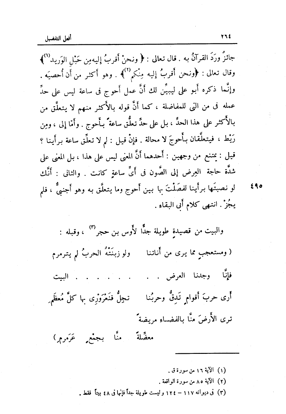 جَائِز ورد الْقُرْآن بِهِ. قَالَ تَعَالَى: وَنحن أقرب إِلَيْهِ من حَبل الوريد. وَقَالَ تَعَالَى: وَنحن أقرب إِلَيْهِ مِنْكُم.