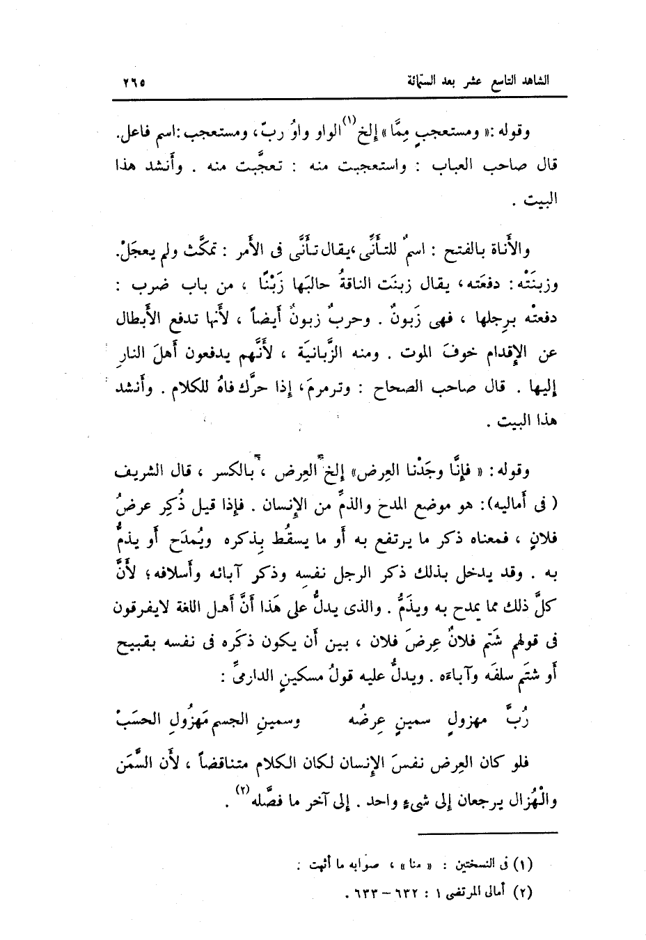 وَالَّذِي يدل على هَذَا أَن أهل اللُّغَة لَا يفرقون فِي قَوْلهم: شتم فلانٌ عرض فلَان بَين أَن يكون وَيدل عَلَيْهِ قَول مسكينٍ الدَّارمِيّ: الرمل