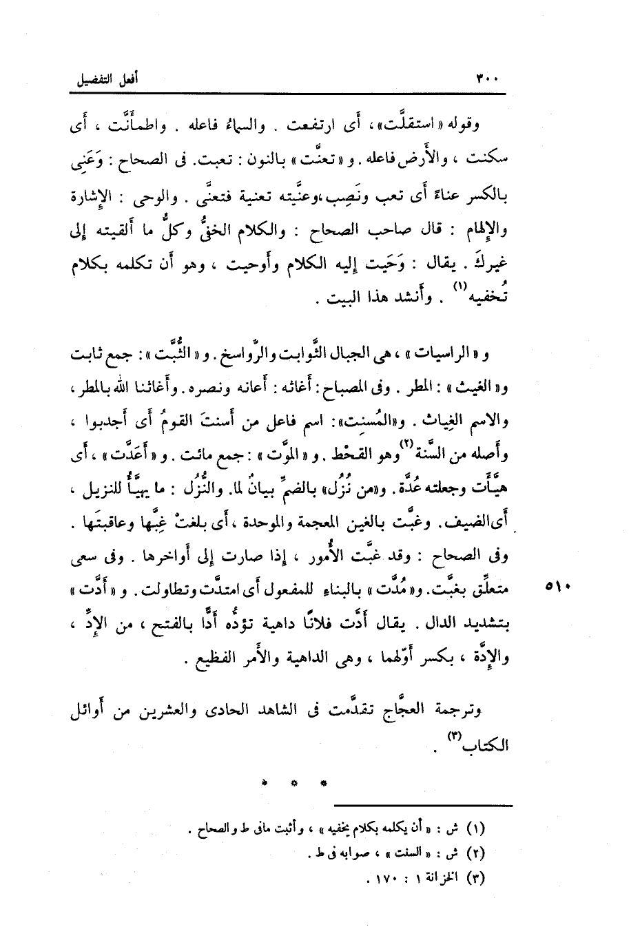 والراسيات هِيَ الْجبَال الثوابت والرواسخ. والثبت: جمع ثَابت. والغيث: الْمَطَر. وَفِي الْمِصْبَاح: أغاثه: أَعَانَهُ وَنَصره. وأغاثنا الله بالمطر وَالِاسْم الغياث.