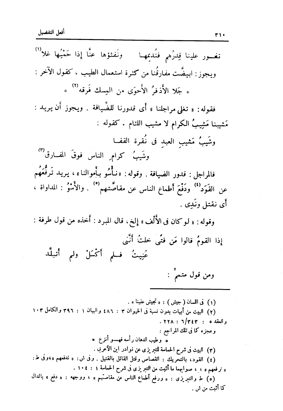 فَقَوله: تغلي مراجلنا أَي: قدورنا للضيافة. وَيجوز أَن يُرِيد: مشينا مشيب الْكِرَام لَا مشيب اللئام كَقَوْلِه: الطَّوِيل فالمراجل: قدور الضِّيَافَة. وَقَوله: نأسو بِأَمْوَالِنَا يُرِيد ترفعهم عَن الْقود وَدفع أطماع النَّاس عَن مقاصتهم. والأسو: المداواة أَي: نقْتل وندي. وَقَوله: لَو كَانَ فِي الْألف إِلَخ قَالَ الْمبرد: أَخذه من قَول طرفَة: الطَّوِيل