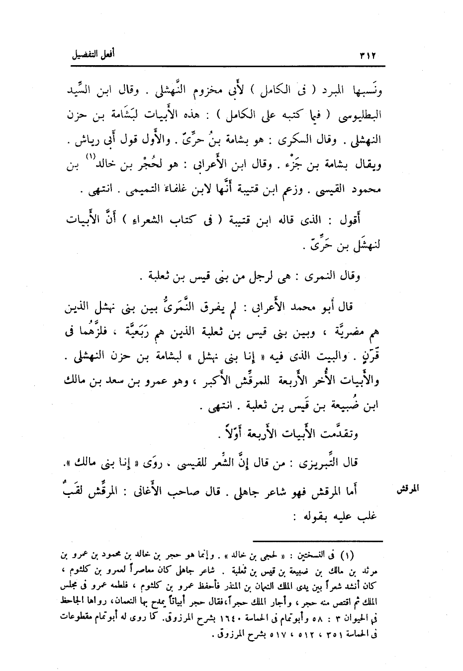 قَالَ أَبُو أَحْمد الْأَعرَابِي: لم يفرق النمري بَين بني نهشل الَّذين هم مضربة. وَبَين بني قيس ثَعْلَبَة الَّذين هم ربيعَة فلزهما فِي قرن.
