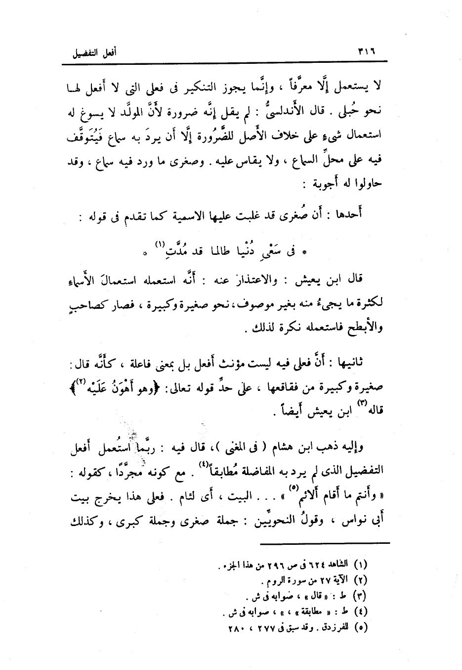وَإِلَيْهِ ذهب ابْن هِشَام فِي الْمُغنِي قَالَ فِيهِ: رُبمَا اسْتعْمل أفعل التَّفْضِيل الَّذِي لم يرد بِهِ المفاضلة مطابقاً. مَعَ كَونه مُجَردا كَقَوْلِه: وَأَنْتُم مَا أَقَامَ ألائم ... . . الْبَيْت أَي: لئام. فعلى هَذَا تخرج بَيت أبي نواس وَقَول النَّحْوِيين: جملَة صغرى وَجُمْلَة كبرى وَكَذَلِكَ