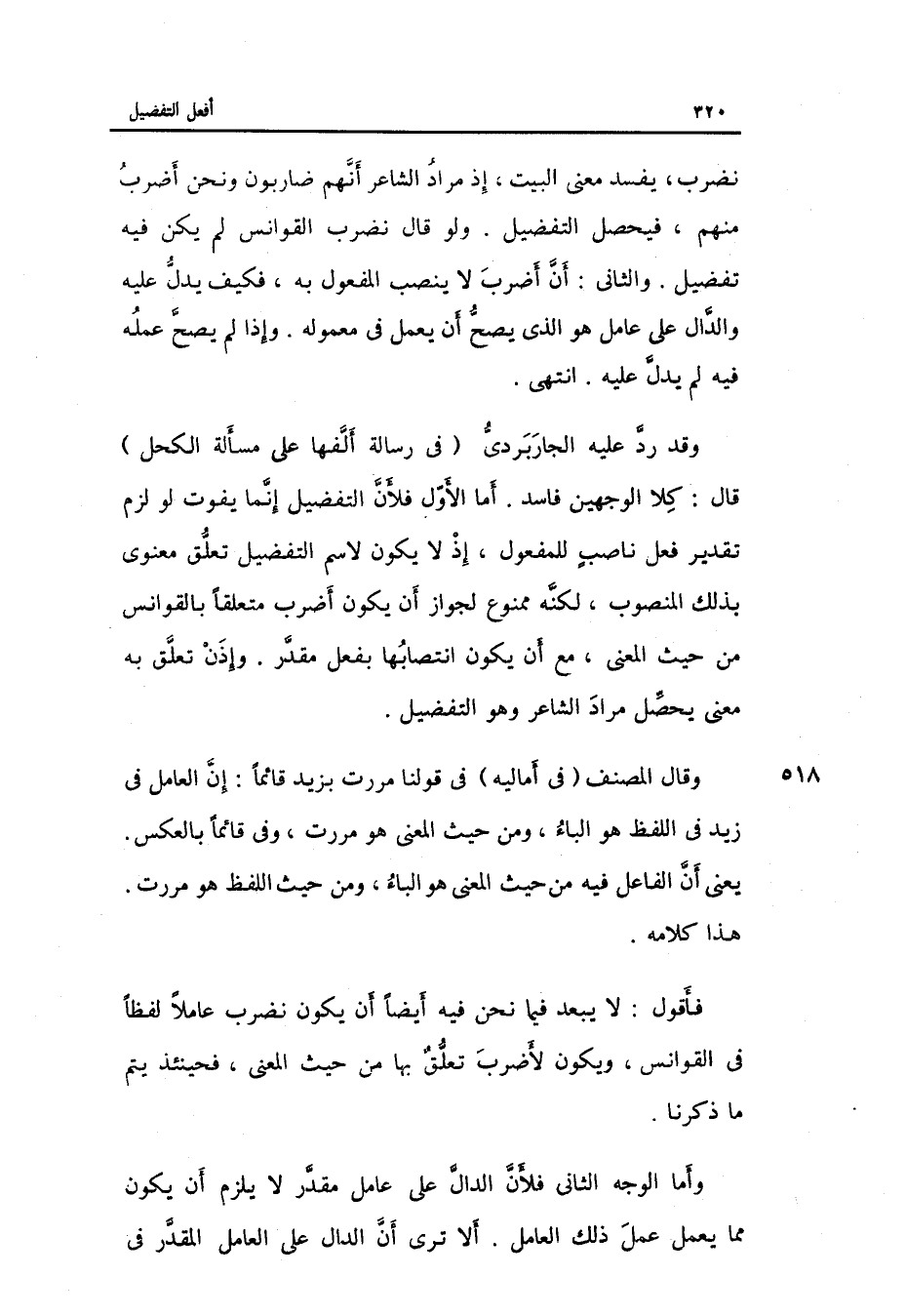أما الأول فَلِأَن التَّفْضِيل إِنَّمَا يفوت لَو لزم تَقْدِير فعل ناصبٍ للْمَفْعُول إِذْ لَا يكون لاسم التَّفْضِيل تعلق معنوي بذلك الْمَنْصُوب لكنه مَمْنُوع لجَوَاز أَن يكون أضْرب مُتَعَلقا بالقوانس من حَيْثُ الْمَعْنى مَعَ أَن يكون انتصابها بِفعل مُقَدّر. وَإِذن تعلق بِهِ معنى يحصل مُرَاد الشَّاعِر وَهُوَ التَّفْضِيل.)