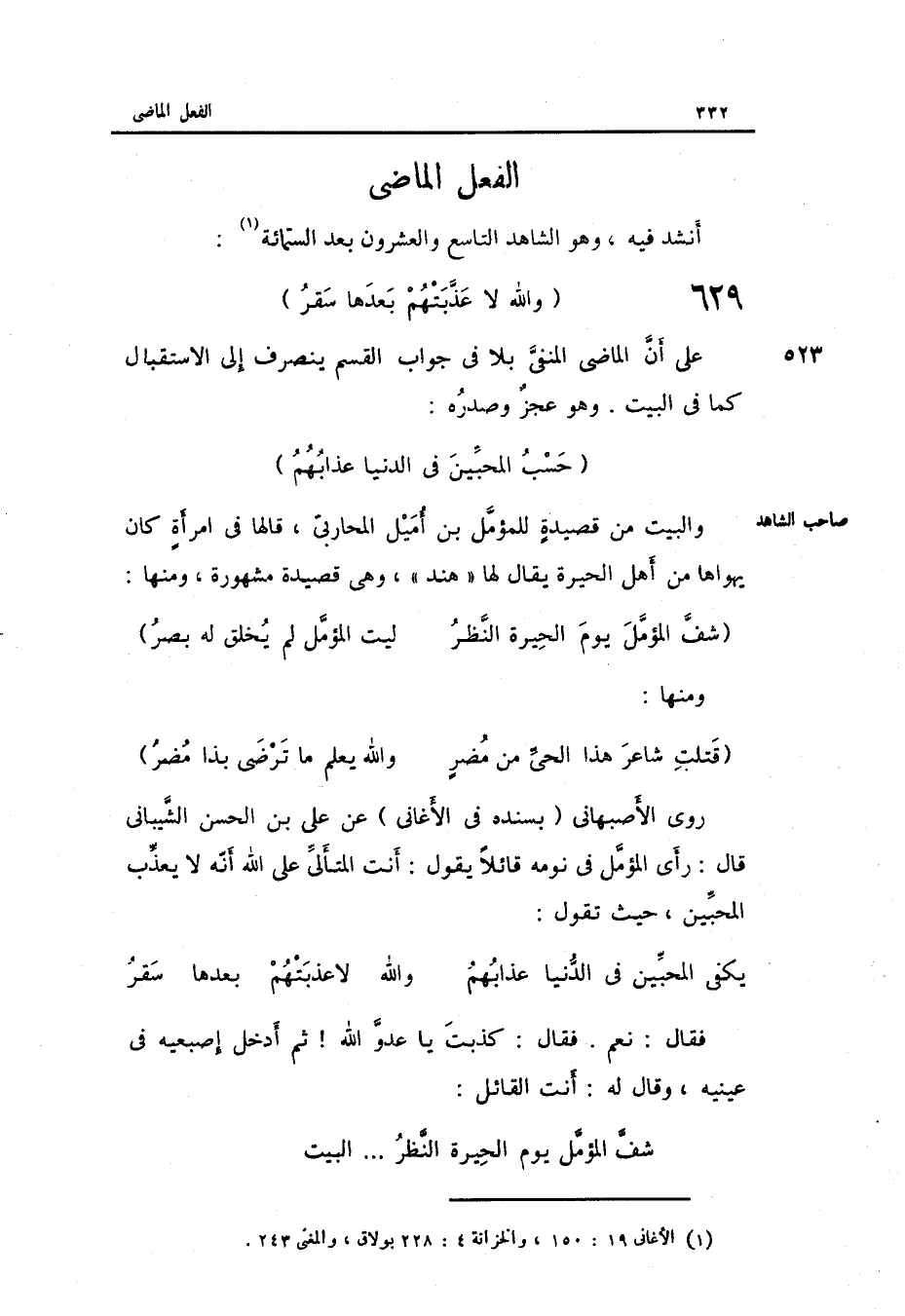 وَهُوَ عجز وصدره: حسب المحبين فِي الدُّنْيَا عَذَابهمْ وَالْبَيْت من قصيدةٍ للمؤمل بن أميل الْمحَاربي قَالَهَا فِي امرأةٍ كَانَ يهواها من أهل الْحيرَة يُقَال لَهَا: هِنْد وَهِي قصيدة مَشْهُورَة.