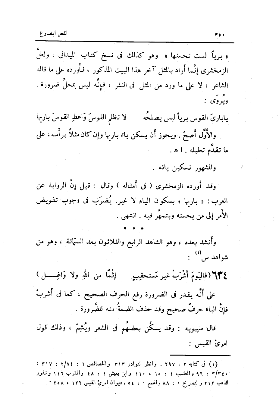 وَقد أوردهُ الزَّمَخْشَرِيّ فِي أَمْثَاله وَقَالَ: قيل إِن الرِّوَايَة عَن الْعَرَب: باريها بِسُكُون الْيَاء لَا غير.
