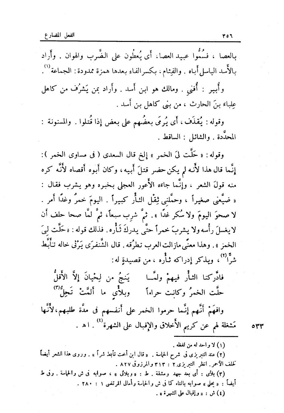 بالعصا فسموا عبيد الْعَصَا أَي: يُعْطون على الضَّرْب والهوان. وَأَرَادَ بالأسد الباسل أَبَاهُ. والفئام بِكَسْر الْفَاء بعْدهَا همزَة ممدودة: الْجَمَاعَة.