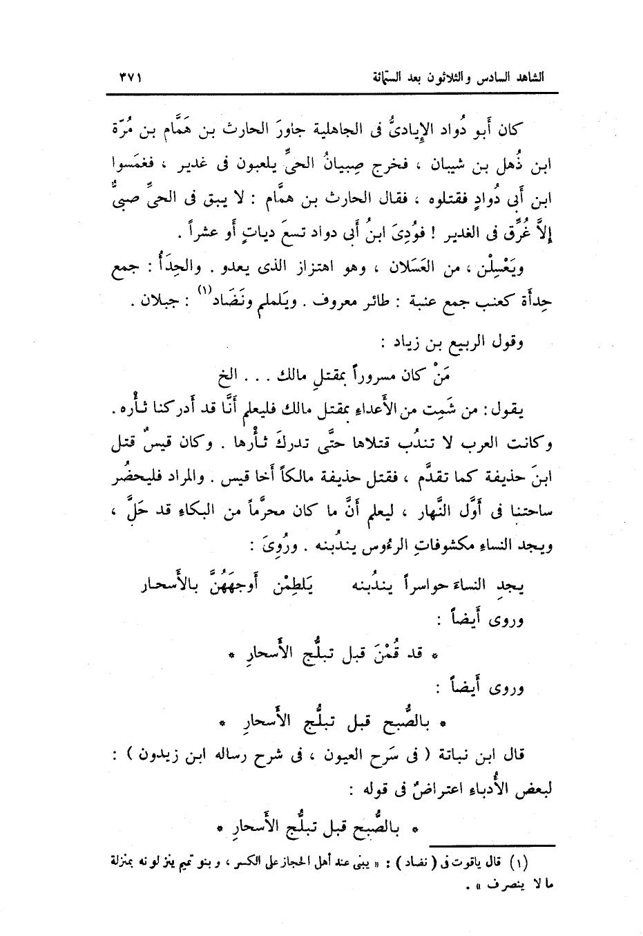 وَرُوِيَ أَيْضا: قد قمن قبل تبلج الأسحار وَرُوِيَ أَيْضا: بالصبح قبل تبلج الأسحار قَالَ ابْن نباتة فِي سرح الْعُيُون فِي شرح رِسَالَة ابْن زيدون: لبَعض الأدباء