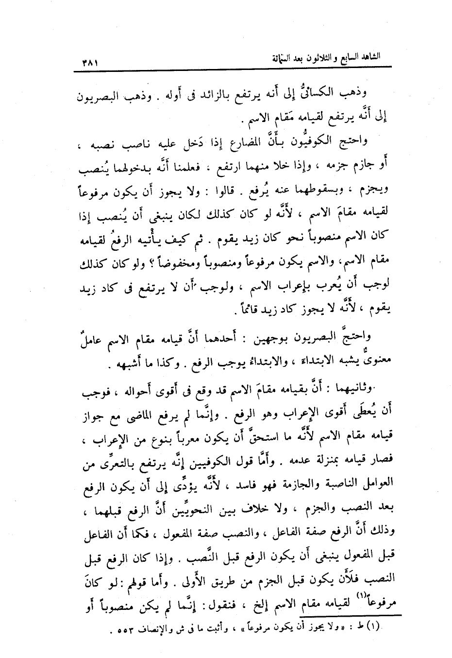 قَالُوا: وَلَا يجوز أَن يكون مَرْفُوعا لقِيَامه مقَام الِاسْم لِأَنَّهُ لَو كَانَ كَذَلِك لَكَانَ يَنْبَغِي أَن ينصب ثمَّ كَيفَ يَأْتِيهِ الرّفْع لقِيَامه مقَام الِاسْم وَالِاسْم يكون مَرْفُوعا ومنصوباً ومخفوضاً وَلَو كَانَ)