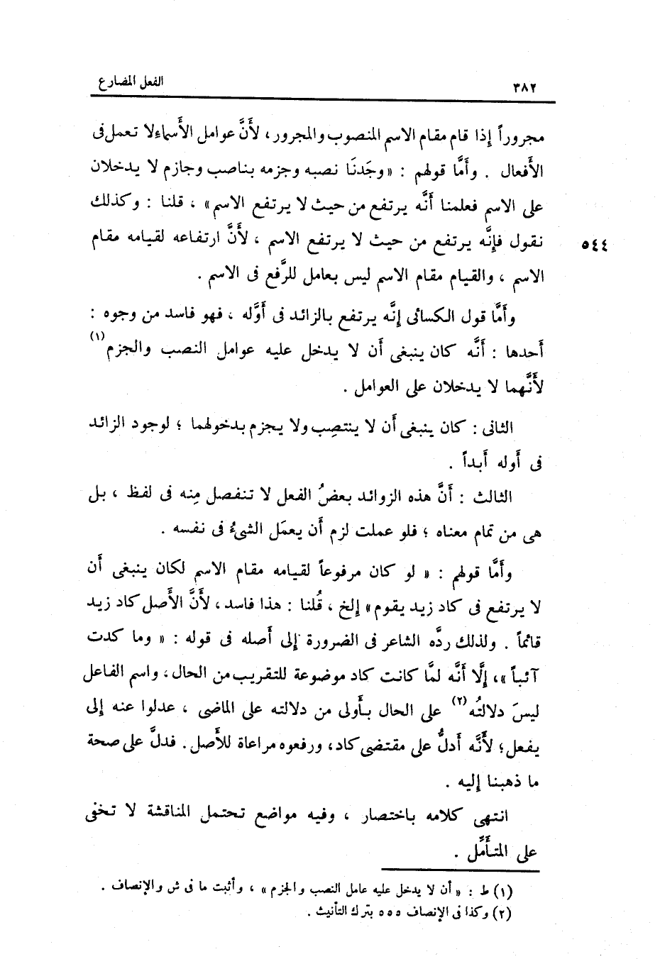 قُلْنَا: هَذَا فَاسد لِأَن الأَصْل كَاد زيد قَائِما. وَلذَلِك رده الشَّاعِر فِي الضَّرُورَة إِلَى أَصله فِي قَوْله: وَمَا كدت آئباً إِلَّا أَنه لما كَانَت كَاد مَوْضُوعَة للتقريب من الْحَال وَاسم الْفَاعِل لَيْسَ دلَالَته على الْحَال بِأولى من دلَالَته على الْمَاضِي عدلوا عَنهُ إِلَى يفعل لِأَنَّهُ أدل على مُقْتَضى كَاد ورفعوه مراعة للْأَصْل. فَدلَّ على صِحَة مَا ذَهَبْنَا إِلَيْهِ.