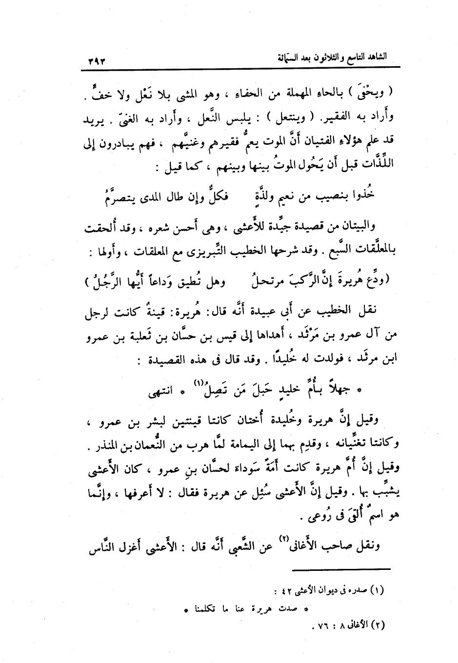 وَنقل صَاحب الأغاني عَن الشّعبِيّ أَنه قَالَ: الْأَعْشَى أغزل النَّاس