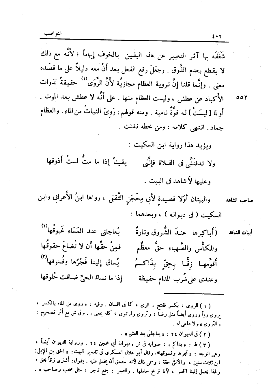 وَجعل رفع الْفِعْل بعد أَن مَعَه دَلِيلا على مَا قَصده معنى. وَإِنَّمَا قلناك إِن تروية الْعِظَام مجازية لِأَن الروى حَقِيقَة لذوات الأكباد عَن عَطش وَلَيْسَت الْعِظَام مِنْهَا.