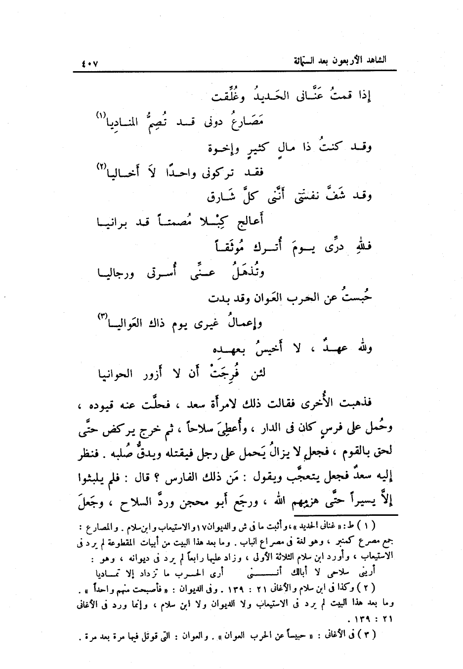 (إِذا قُمْت غناني الْحَدِيد وغلقت ... مصَارِع دوني قد تصم المناديا)