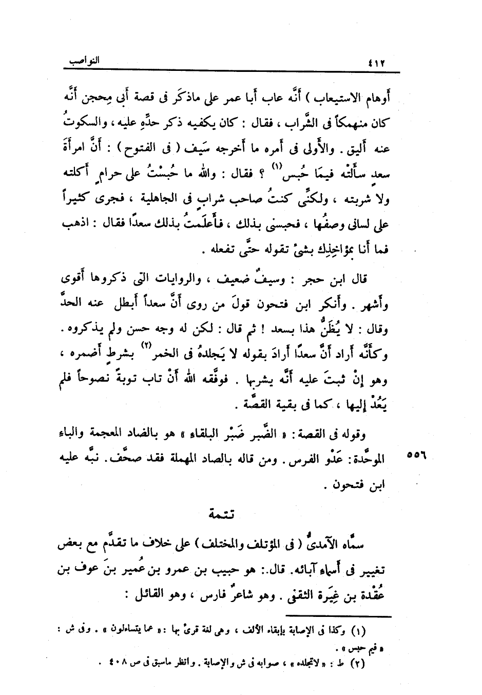 أَوْهَام الِاسْتِيعَاب أَنه عَابَ أَبَا عمر على مَا ذكر فِي قصَّة أبي محجن أَنه كَانَ منهكماً فِي الشَّرَاب فَقَالَ: كَانَ يَكْفِيهِ ذكر حَده عَلَيْهِ وَالسُّكُوت عَنهُ أليق.