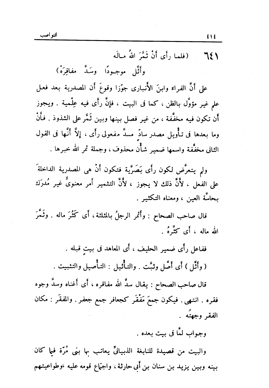 (فَلَمَّا رأى أَن ثَمَر الله مَاله ... وأثل مَوْجُودا وسد مفاقره)
