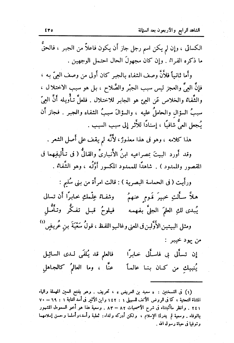وَقد أورد الْبَيْت بمصراعيه ابْن الْأَنْبَارِي والقالي فِي تأليفهما فِي الْمَقْصُور والممدود. شَاهدا وَرَأَيْت فِي الحماسة البصرية: قَالَت امْرَأَة من بني سليم: