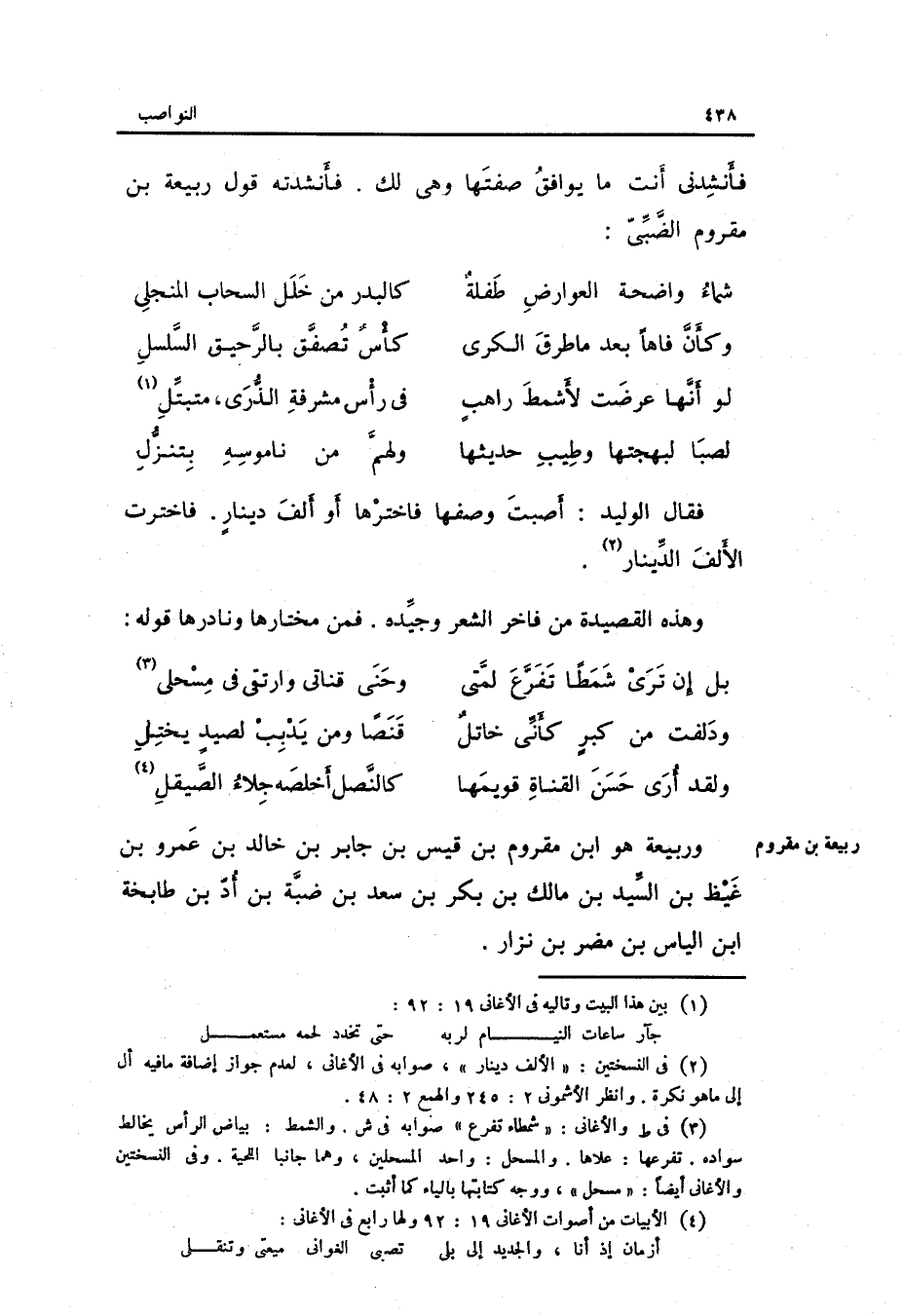 فَأَنْشَدته قَول ربيعَة ابْن مقروم الضَّبِّيّ: