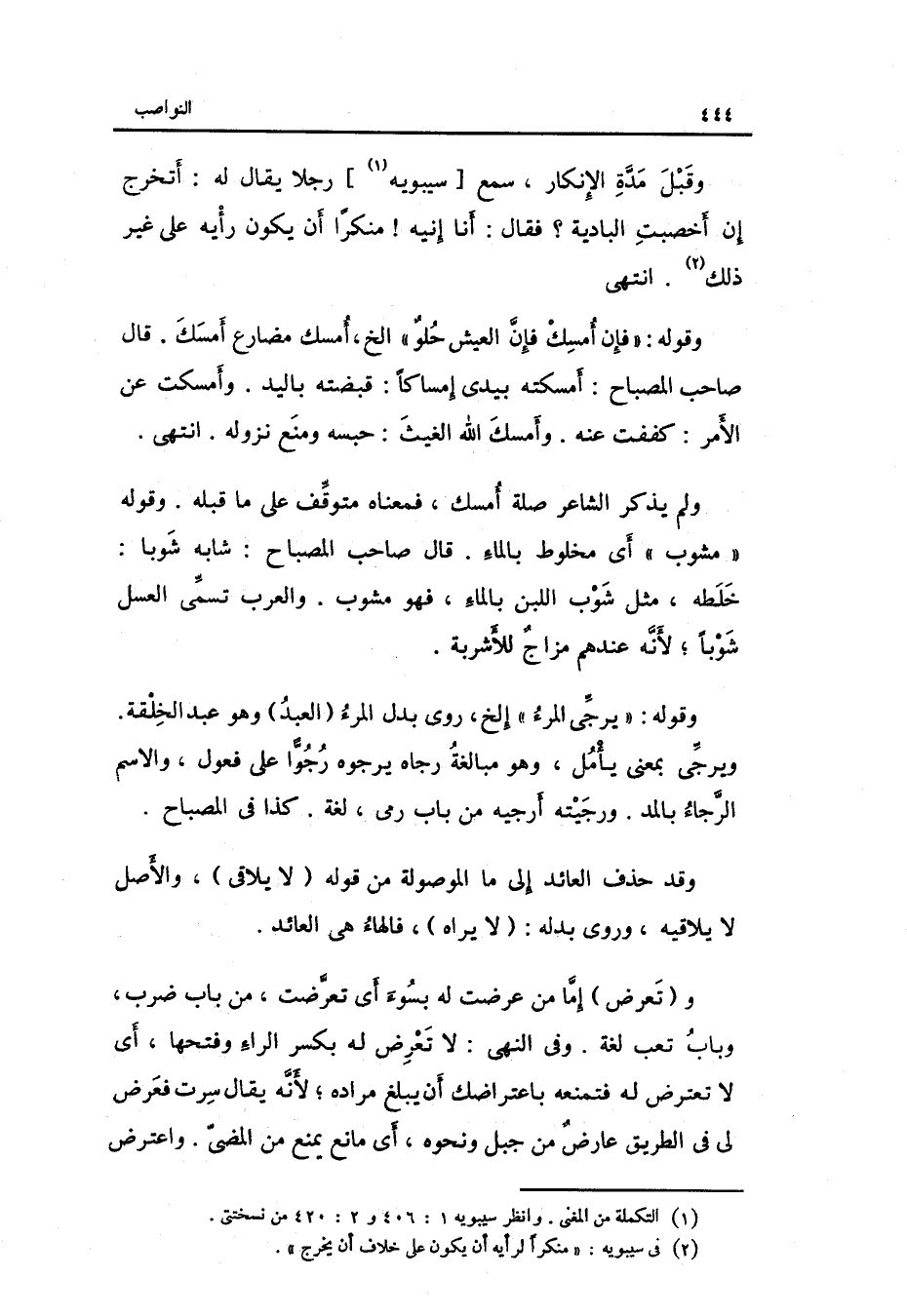 وَقبل مُدَّة الْإِنْكَار سمع سِيبَوَيْهٍ رجلا يُقَال لَهُ: أتخرج إِن أخصبت الْبَادِيَة فَقَالَ: أَنا إنيه مُنْكرا أَن يكون رَأْيه على غير ذَلِك. انْتهى.