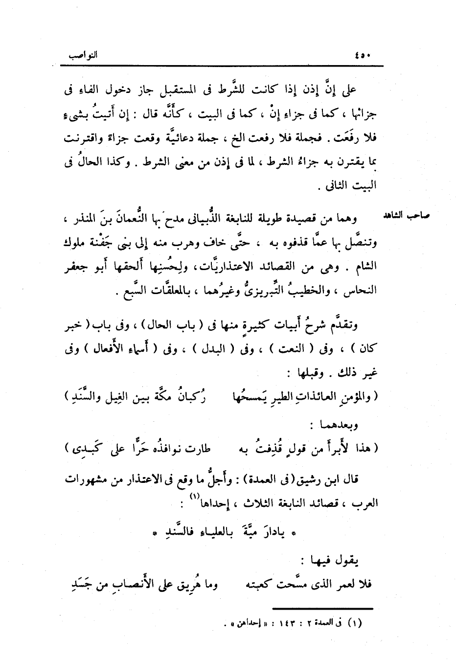 قَالَ ابْن رَشِيق فِي الْعُمْدَة: وَأجل مَا وَقع فِي الِاعْتِذَار من مشهورات الْعَرَب قصائد النَّابِغَة الثَّلَاث: إِحْدَاهَا: الْبَسِيط