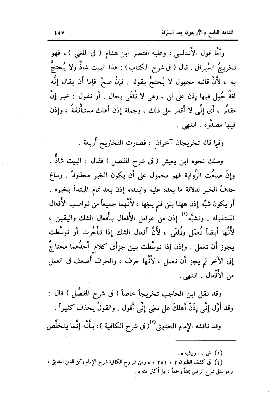 وَقد ناقشه الإِمَام الحديثي فِي شرح الكافية بِأَنَّهُ إِنَّمَا يتَخَلَّص