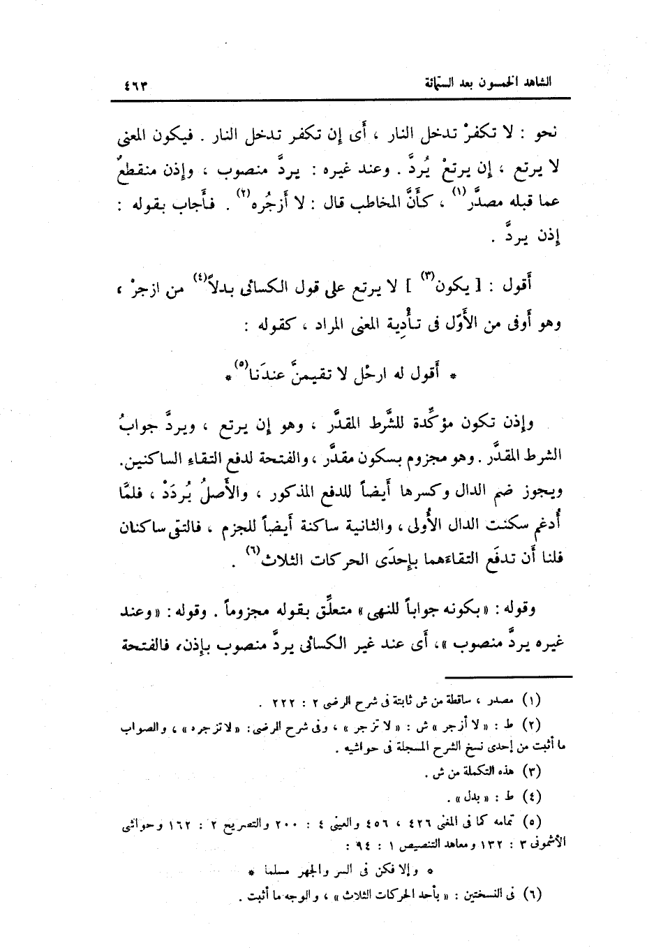 وَهُوَ مجزوم بِسُكُون مُقَدّر والفتحة لدفع التقاء الساكنين. وَيجوز ضم الدَّال وَكسرهَا أَيْضا للدَّفْع الْمَذْكُور وَالْأَصْل يردد فَلَمَّا أدغم سكنت الدَّال الأولى