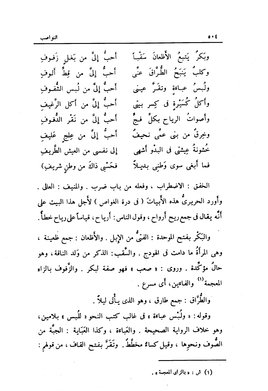 (خشونه عيشتي فِي البدو أشهى ... إِلَى نَفسِي من الْعَيْش الطريف)