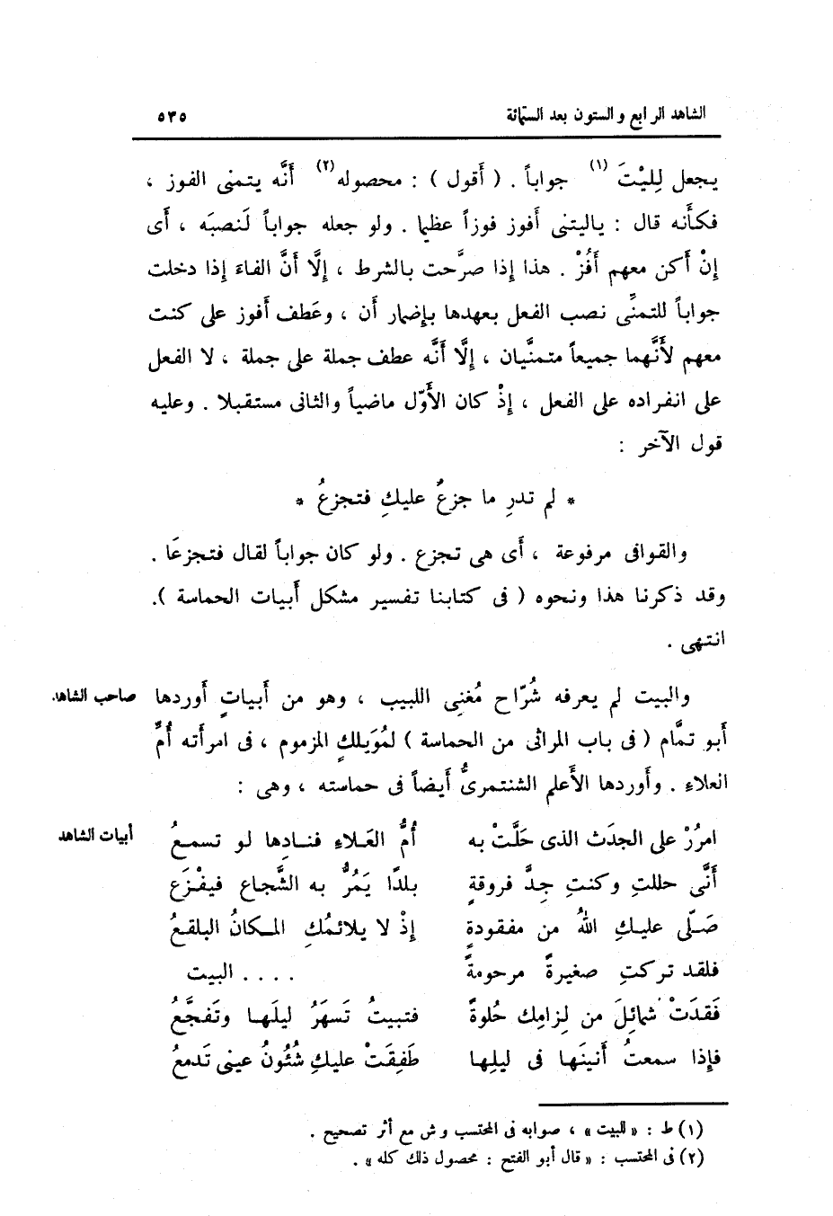 وَعَلِيهِ قَول الآخر: لن تدر مَا جزعٌ عَلَيْك فتجزع والقوافي مَرْفُوعَة أَي: هِيَ تجزع. وَلَو كَانَ جَوَابا لقَالَ: فتجزعا. وَقد ذكرنَا هَذَا وَنَحْوه فِي كتَابنَا تَفْسِير مُشكل أَبْيَات الحماسة. انْتهى.