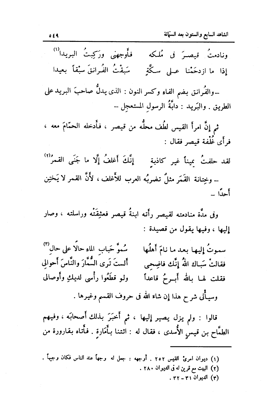 ثمَّ إِن امْرأ الْقَيْس لطف مَحَله من قَيْصر فَأدْخلهُ الْحمام مَعَه فَرَأى غلفة قَيْصر فَقَالَ: الْبَسِيط
