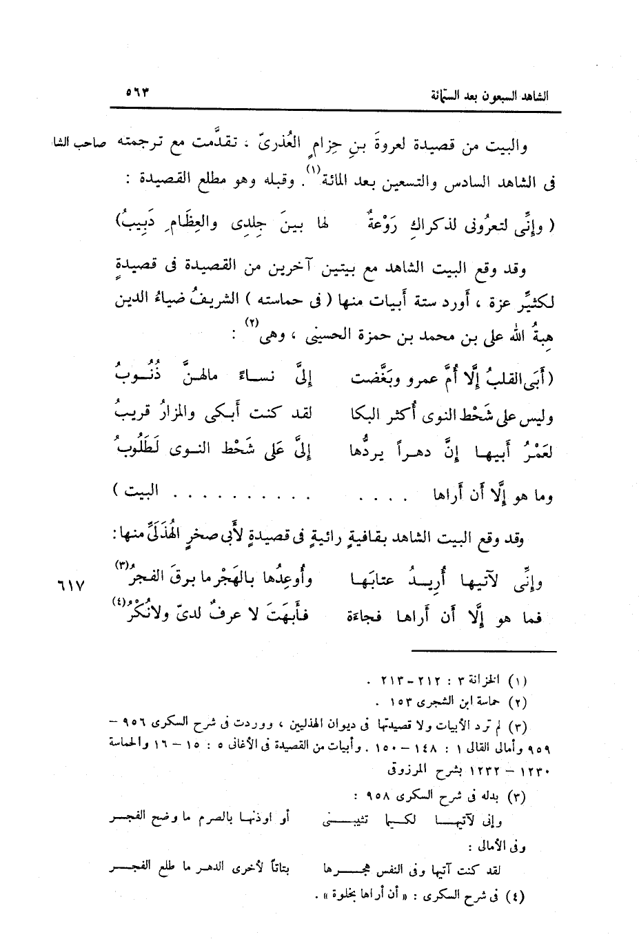 . وَالْبَيْت من قصيدة لعروة بن حزامٍ العذري تقدّمت مَعَ تَرْجَمته فِي الشَّاهِد السَّادِس وَالتسْعين بعد الْمِائَة.