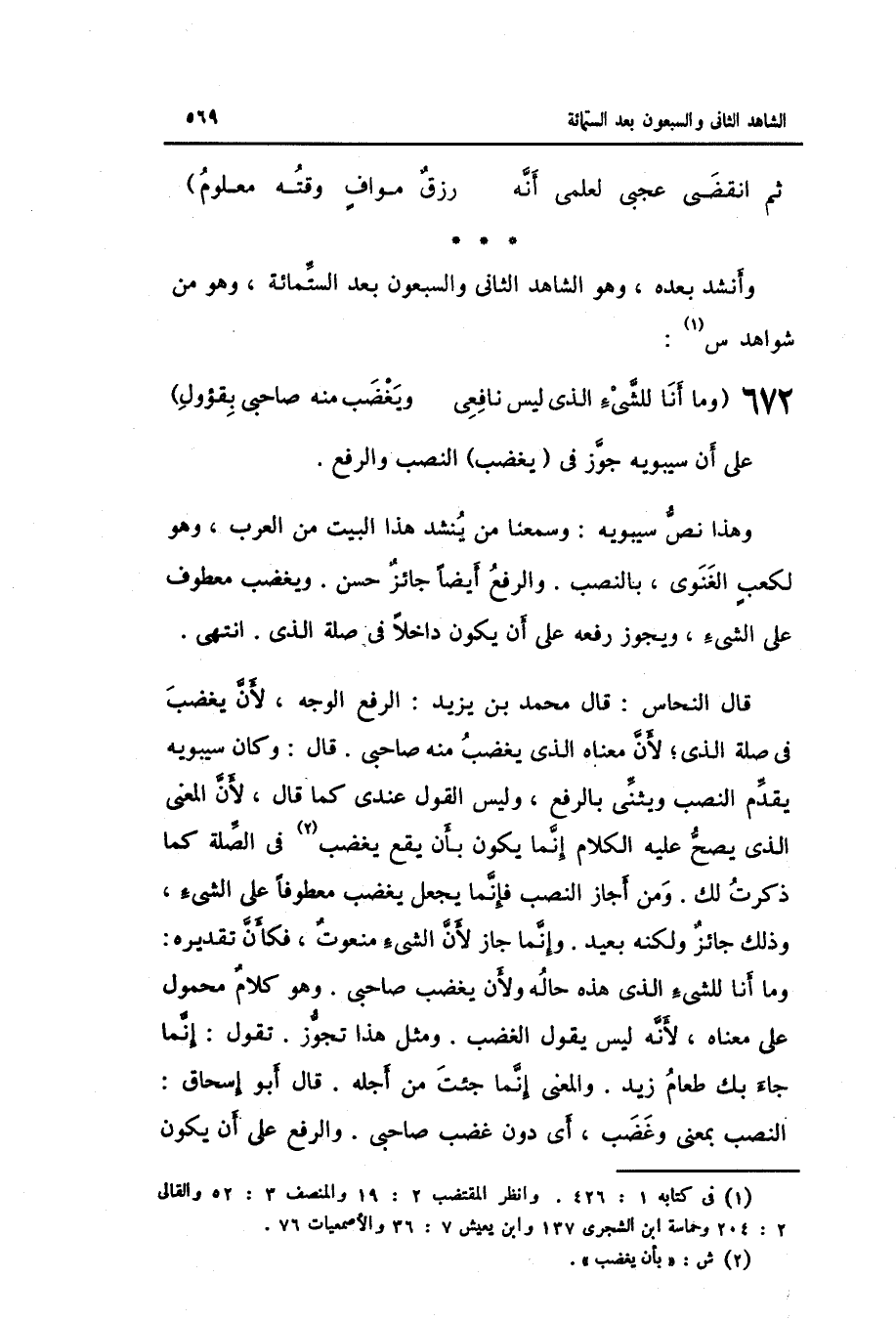 (الشَّاهِد الثَّانِي وَالسَّبْعُونَ بعد الستمائة)