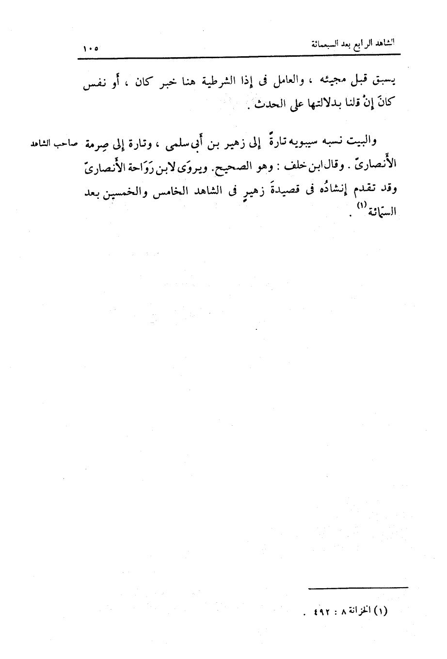 وَالْبَيْت نسبه سِيبَوَيْهٍ تَارَة إِلَى زُهَيْر بن أبي سلمى وَتارَة إِلَى صرمة الْأنْصَارِيّ. وَقَالَ ابْن خلف: وَهُوَ الصَّحِيح. ويروى لِابْنِ رَوَاحَة الْأنْصَارِيّ وَقد تقدم إنشاده فِي قصيدة زُهَيْر فِي الشَّاهِد الْخَامِس وَالْخمسين بعد الستمائة.