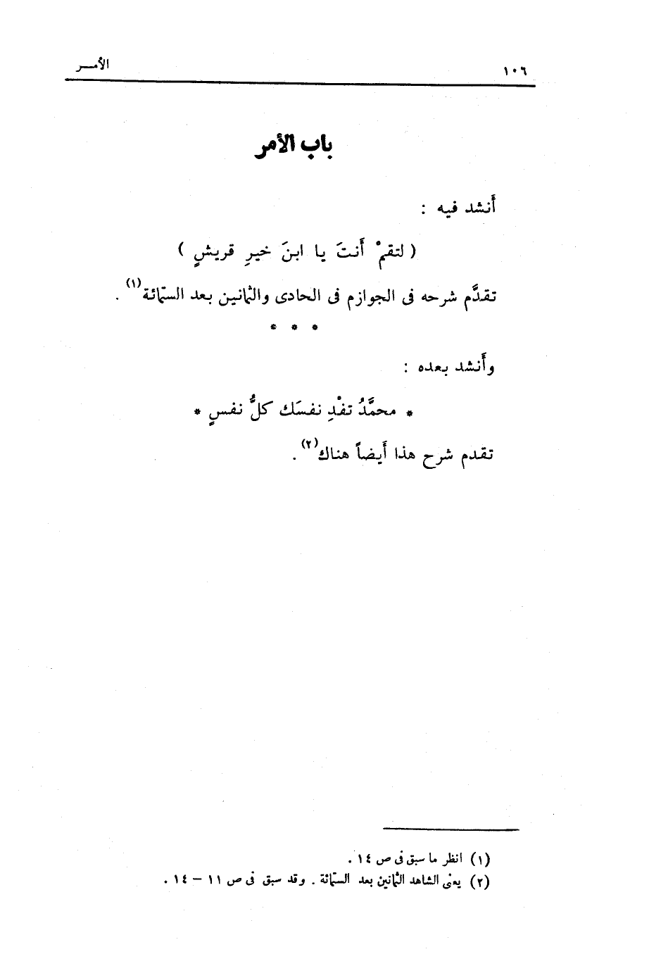 أنْشد فِيهِ: الْخَفِيف لتقم أَنْت يَا ابْن خير قُرَيْش تقدم شَرحه فِي الجوازم فِي الْحَادِي والثمانين بعد الستمائة.