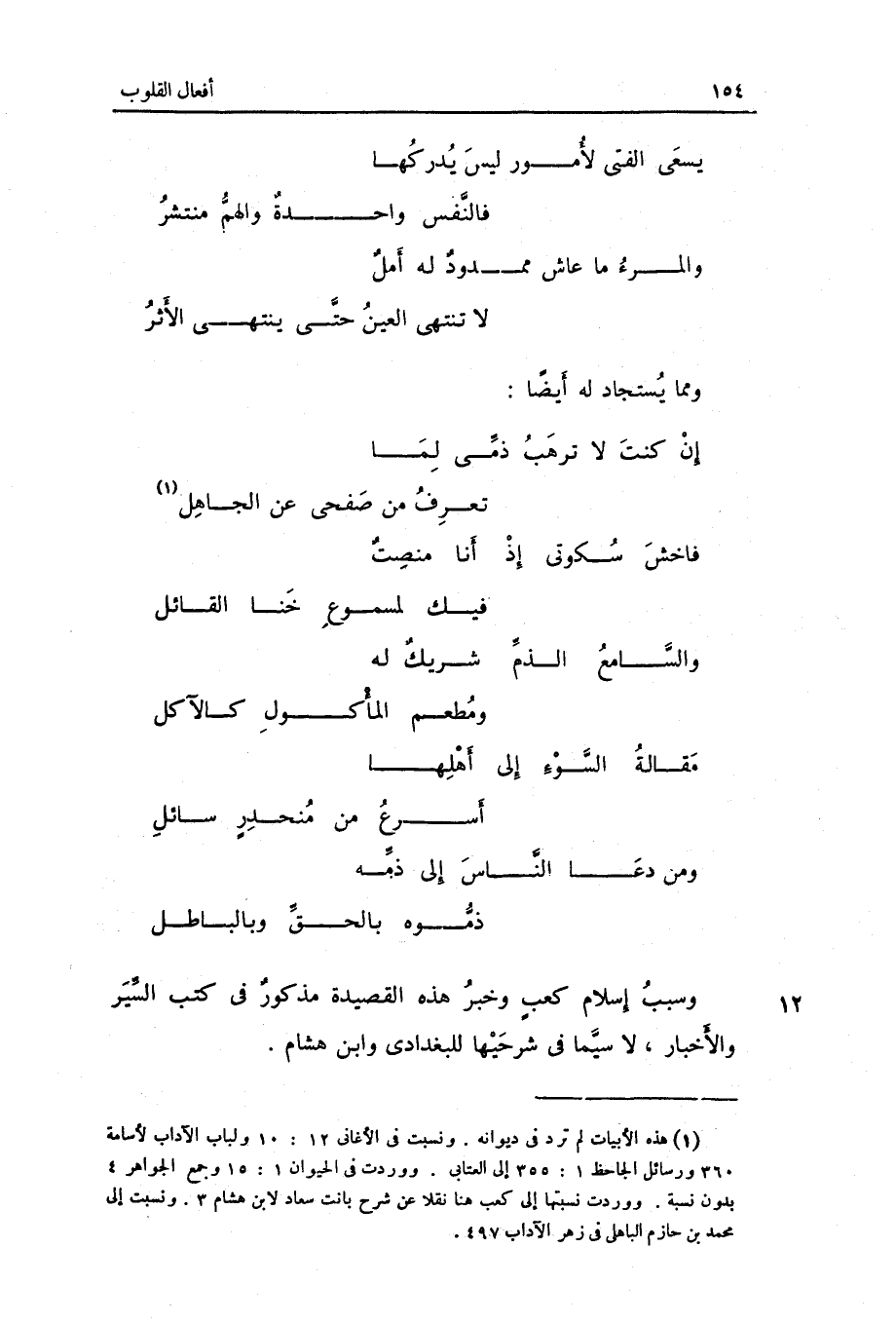 وَسبب إِسْلَام كَعْب وَخبر هَذِه القصيدة مَذْكُور فِي كتب السّير وَالْأَخْبَار لَا سِيمَا فِي شرحيهما للبغدادي وَابْن هِشَام.