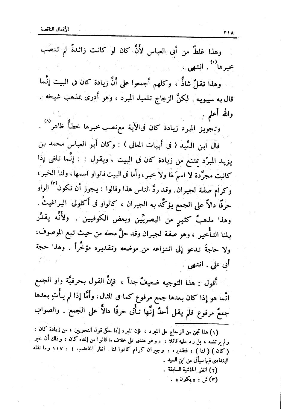 وَهَذَا نقل شَاذ وَكلهمْ أَجمعُوا على أَن زِيَادَة كَانَ فِي الْبَيْت إِنَّمَا قَالَ بِهِ سِيبَوَيْهٍ. لَكِن الزّجاج تلميذ الْمبرد وَهُوَ أدرى بِمذهب شَيْخه. وَالله أعلم.