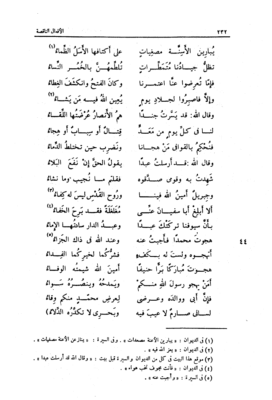 (يبارين الأسنة مصغيات ... على أكتافها الأسل الظلماء)