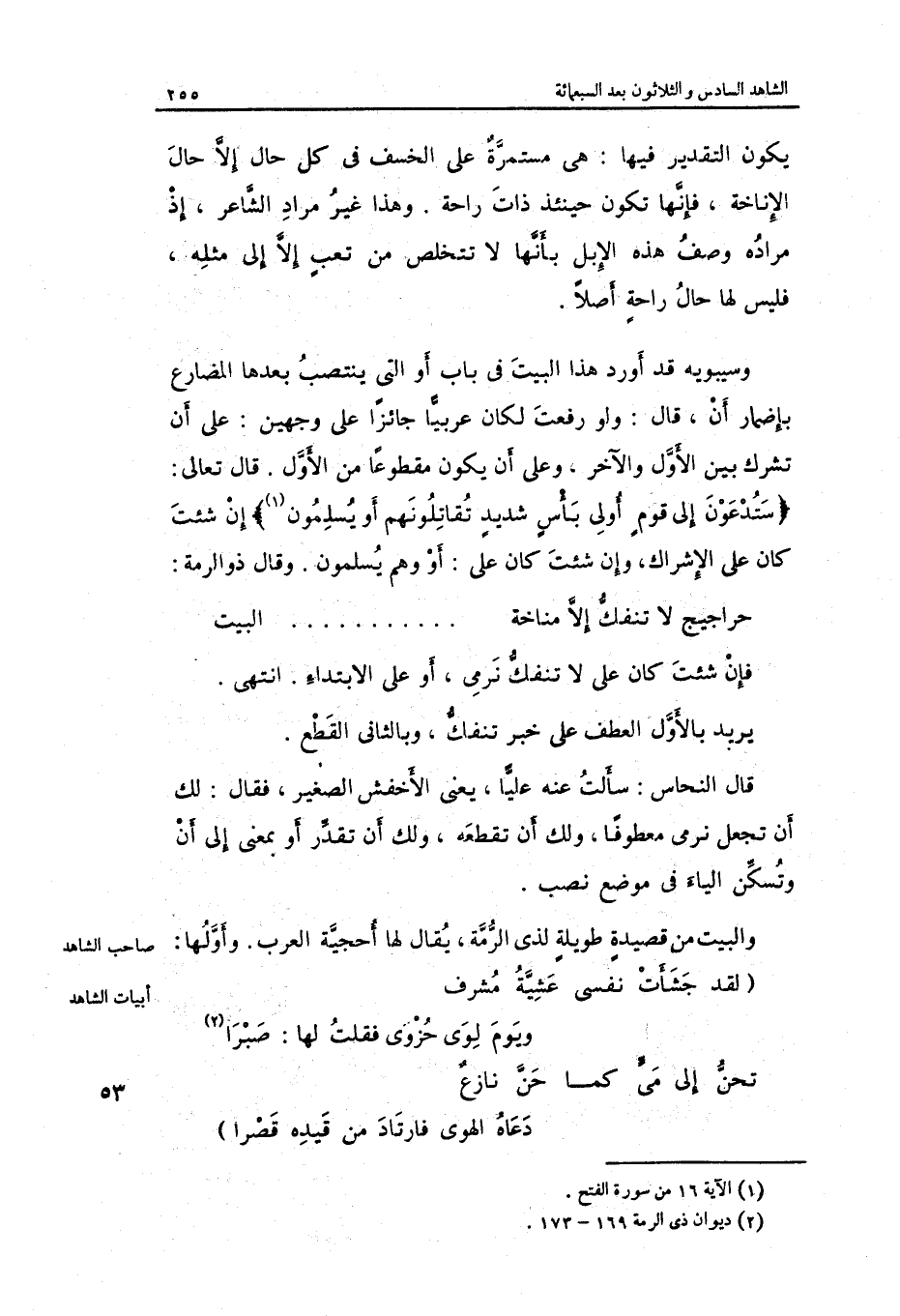 وسيبويه قد أورد هَذَا الْبَيْت فِي بَاب أَو الَّتِي ينْتَصب بعْدهَا الْمُضَارع بإضمار أَن قَالَ: وَلَو رفعت لَكَانَ عَرَبيا جَائِزا على وَجْهَيْن: على أَن تشرك بَين الأول وَالْآخر وعَلى أَن يكون مَقْطُوعًا من الأول. قَالَ تَعَالَى: ستدعون إِلَى قوم أولي بَأْس شَدِيد تقاتلونهم أَو يسلمُونَ إِن شِئْت كَانَ على الْإِشْرَاك وَإِن شِئْت كَانَ على: أَو وهم يسلمُونَ.