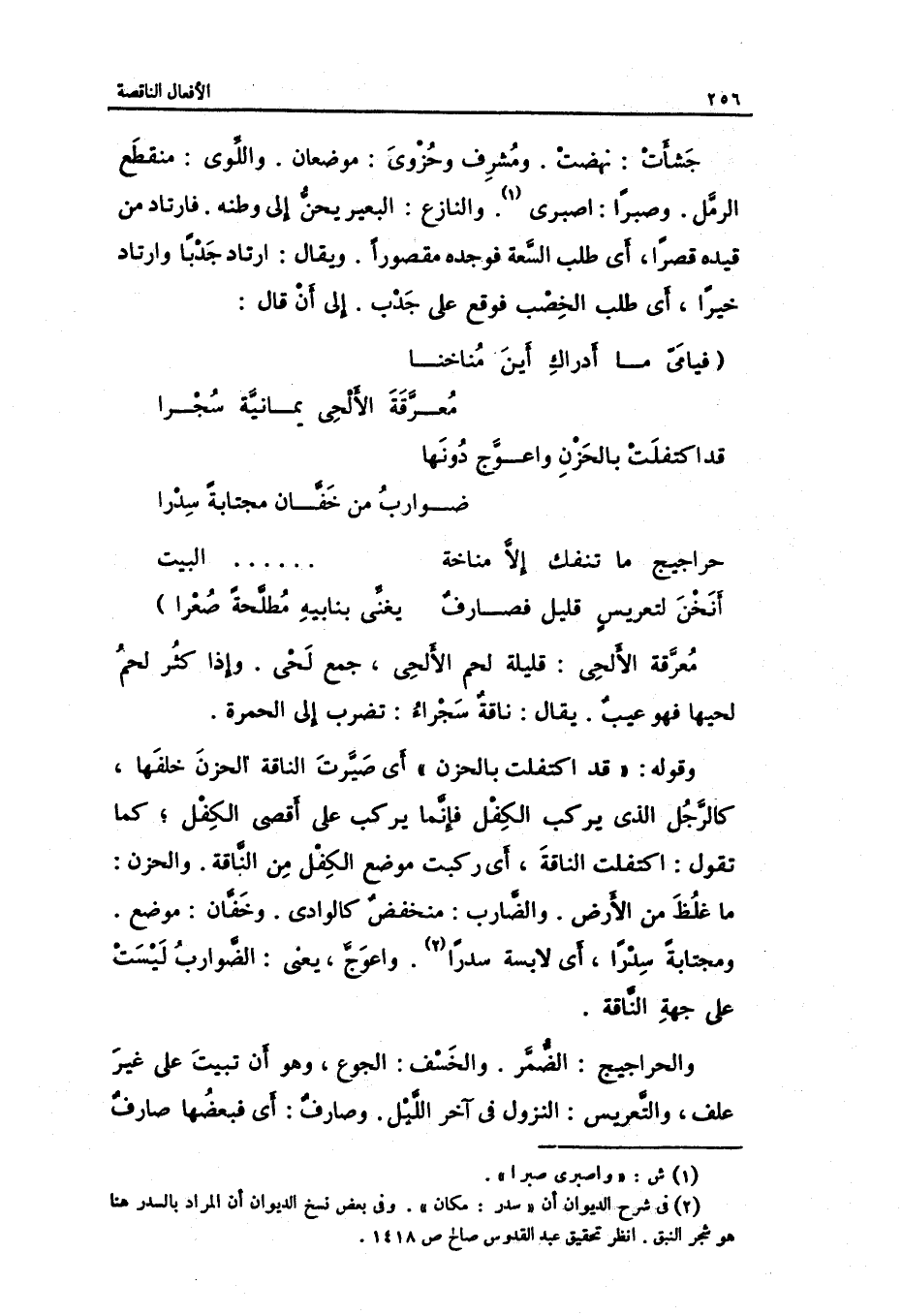 والحراجيج: الضمر. والخسف: الْجُوع وَهُوَ ن تبيت على غير علف والتعريس: النُّزُول فِي آخر اللَّيْل. وصارف أَي: فبعضها صَارف