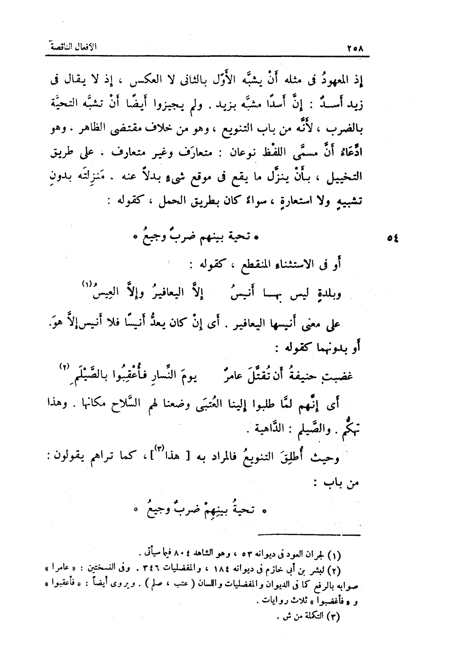 على معنى أنيسها اليعافير. أَي: إِن كَانَ يعد أنيساً فَلَا أنيس إِلَّا هُوَ. أَو بدونهما كَقَوْلِه: الْكَامِل