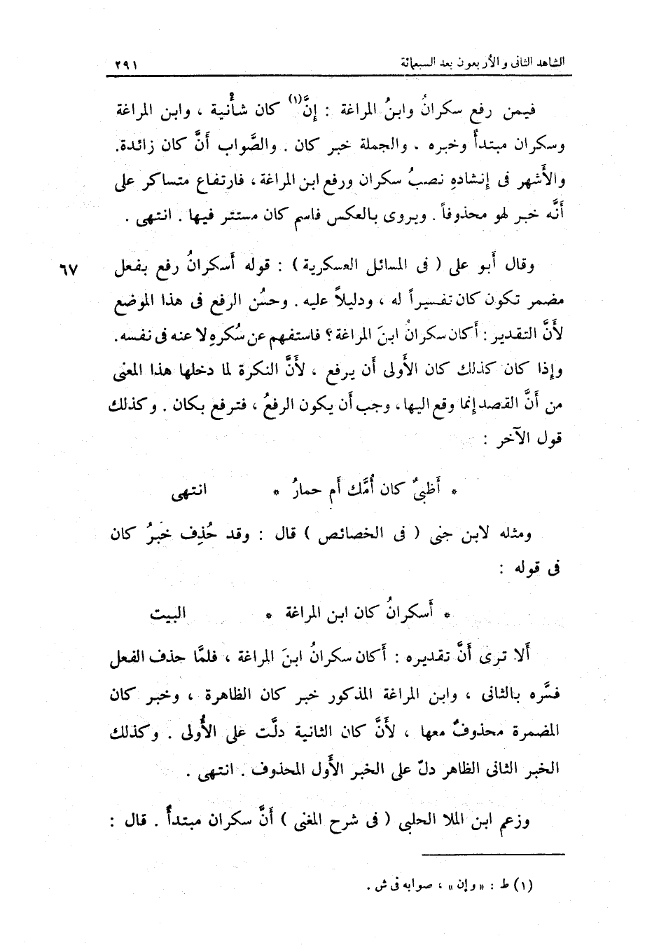 فِيمَن رفع سَكرَان وَابْن المراغة: إِن كَانَ شأنية وَابْن المراغة وسكران مُبْتَدأ وَخَبره وَالْجُمْلَة خبر كَانَ. وَالصَّوَاب أَن كَانَ زَائِدَة.